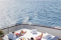 Aqua Blu’s naval pedigree makes it the perfect vessel to navigate Eastern Indonesia’s vast seas. Having attained the highest international classifications (RINA, SOLAS, ISM) in safety, the vessel is additionally equipped with Quantum Zero Speed stabilisers for optimal comfort at rest or while sailing.