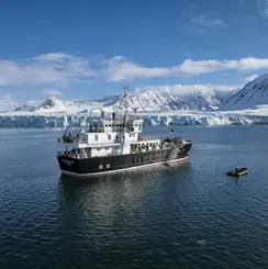 The Explorer is a small, versatile expedition ship used by Secret Atlas for intimate micro-cruises, primarily in the Arctic and Antarctic. Accommodating just 12 guests, it offers a highly personal and immersive polar exploration experience. The vessel is designed to be agile and strong, allowing it to navigate deep into the pack ice and access remote areas that are inaccessible to larger ships. Its small size fosters a close-knit, communal atmosphere among guests and the expedition team. The onboard experience focuses on maximizing time in the wilderness, with less time spent waiting to board Zodiacs for shore landings and cruises.