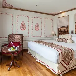 Common spaces are rich with cane and wood furniture, Persian rugs, and wide Burmese teak decks. Large French balconies offer riverscapes and spectacular views to guests. In the spacious suites, intricate tapestries and hand-stenciled murals embellish a luxe stay. Cosy sitting areas, a gym and spa, breezy, sun-kissed spaces and excellent service make these ships serene sanctuaries for travellers in India.