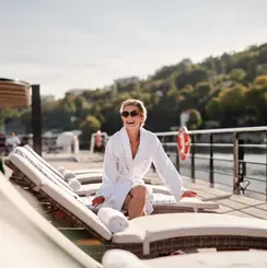 The Riverside Ravel boasts a chic, modern design, featuring spacious suites that often include a French balcony. It offers a similar range of luxury amenities to its sister ship, including multiple dining venues, a bistro, and a sun deck with a pop-up bar. It's all-inclusive model covers gourmet meals prepared with fresh, regional ingredients, and a butler service is provided for all suites. The Riverside Ravel is ideal for travelers seeking to experience the culinary and cultural highlights of Southern France in a luxurious, boutique hotel-like setting.